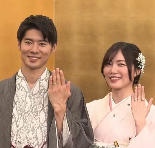 松井珠理奈さんは、結婚会見で華やかな和装を披露しました。